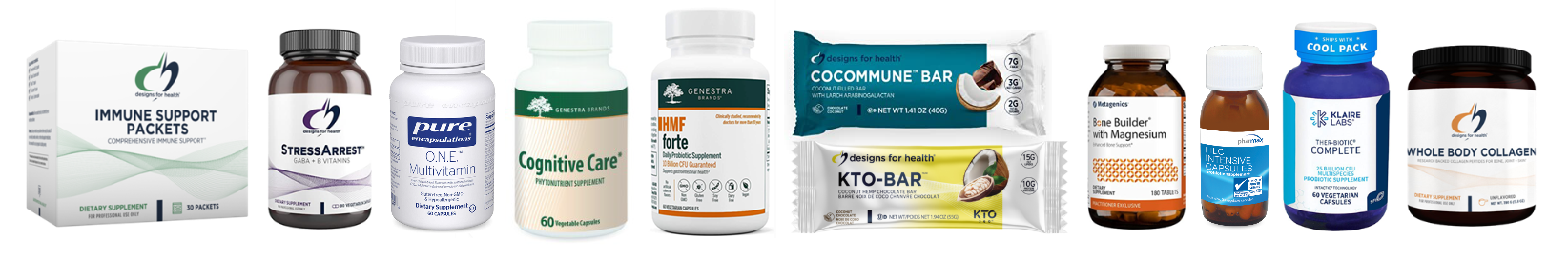 Why is this so important? Sales of these special brands must be sold through a health care practitioner like us because we can help you choose the best ones for your specific needs. Not to mention that when you find them on Amazon, they are often counterfeits from China or expired! Plus, there is no one to support you if you have questions about how to take them for example. But through us, you are guaranteed to get the authentic supplements made by the companies you love, plus you get our support.